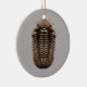 Round ornament with digitally perfected trilobite fossil on a gray background.