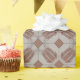 Geology wrapping paper, symmetrical trilobite fossil design in reddish earth tones.