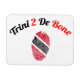 Trinidad and Tobago flexible magnet with cool trini 2 de bone text and a T&T fingerprint.Will look good on your refrigerator and other magnetic surfaces. Have fun customizing it-Background colour can be changed by you to any other of your liking.Click 'Customize it'