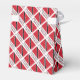 Personalized tent shaped favor box showing the red, white and black Trinidadian and Tobagonian flag with the words TRINIDAD AND TOBAGO below. Design is tiled for an artistic look. A white fractal of squiggly squares provides a place for a name for personalization. Fun for family reunions, travel groups, and clubs.