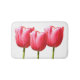 A lovely bath mat featuring a trio of rose colored tulip blooms to make your bathroom extra special.