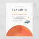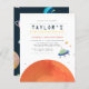 An outer space themed invitation for your little one's birthday! This design features colorful spaceship typography. At the top of this card, there is faux gold glitter, and at the bottom, a big orange sun, a ufo, and some stars. Cards reverse to a galaxy scene with planets, stars, and more! Click on "Personalize" to change the text. As part of the budget selection on Zazzle, this sheet isn't a standard invite size or paper quality. If you want this design on an invitation card you can find it in our store or use the Zazzle Make Machine to transfer it onto the product of your choice. Feel free to contact me with any design-related questions. Visit our store for more designs!
