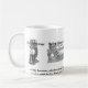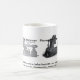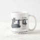 Perfect for the Blacksmith. This is a white coffee cup with 4 old pictures of Trip Hammers and Helve Hammers on it. Around the bottom is a description of the machines.