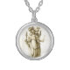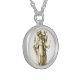 I chose gold plated so that the metal would not react with my skin oils and perspiration. But, I changed the necklace from the gold plated one to a sterling silver. My skin cells will tarnish the silver. But it will not look as bad if some portion of the gold plated necklace somehow became compromised. Zazzle did a find job turning the picture into a pendant for me. As you can see, the colors and the printing of the final product, match the preview. The picture I took is not very clear. But I am pleased with the product I received.
