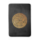 Dramatic black and gold intricate triple Celtic knot swirl mandala. Eternal spirals and trinity knots in gold on a black background.