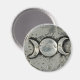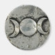 Round magnet with an image of a pewter Triple Goddess symbol. Triple Goddess is a concept in Wicca and other Neopagan belief systems: sometimes a universal, global, "Great Goddess" who is threefold; sometimes a single goddess as maiden, matron and crone; and sometimes three sisters. See the entire Goddess Magnet collection in the PARTY FAVORS section.