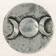 Set of 6 round pulp board disposable coasters with an image of a pewter Triple Goddess medallion.
