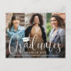 It's a triple graduation party! Announce the achievement of three graduates and invite family and friends to celebrate with stylish joint graduation party postcard invitations. The pictures and wording on this template are simple to personalize. All colors and font styles can be changed with the Zazzle Design Editor tool. This template is a combination announcement card on the front with the grad party invitation on the back. The modern minimalist black and white overlay design features handwritten style script calligraphy with a mortar board cap, elegant classic typography, and a collage with 3 photos of your choice, such as senior pictures or images from the commencement ceremony. These graduation invitation postcards are a stylish way to announce a special day celebration for any three grads, such as siblings, best friends, cousins, triplets, teammates, brothers and sisters, etc. Congratulations to the graduates!