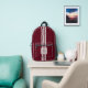 This backpack features three grey stripes on a solid autumn burgundy background with a burgundy monogram in a burgundy and grey frame in the center.