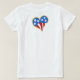 An American flag and triples heart combine to make this cute patriotic graphic that says "Love the USA". There is a companion print on the back of the t-shirt.