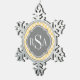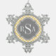 Triple Monogram Grey Yellow Gingham Pattern Snowflake Pewter Christmas Ornament