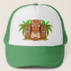 The perfect hat for any lover of Hawaii or island culture. Features custom tiki mask and figures with surrounding palm trees. Enjoy!