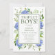 Triplet Boys Blue Hydrangeas Baby Shower Invitation