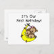 Triplets First Birthday T-shirts, bodysuits, tote bags, buttons, magnets, cards, and more featuring two boys and one girl monkey and a big yellow banana!