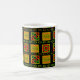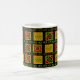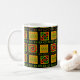 This mug has a Black History design of circles, triangles, diamonds, lines, and zigzags forming a pattern.
