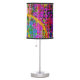 The lamp looks exactly like the picture, bright and colorful. The lamp shade is plastic not what I expected, however I love it! The printing is clear and the name can easily be read.