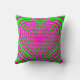 Trippy Neon Pink Green Hypnotic Heart Love Pattern Throw Pillow