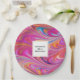 Paper plates with a cool trippy psychedelic design. Pink, orange and hints of blue all swirling around. Retro hippie vibe.