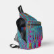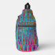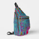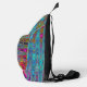 This Cool Colorful Crossbody Sling Bag features a Trippy Sky Blue Abstract Retro Atomic Waves Design with Magenta, Yellow, Aqua, Purple, Turquoise, and Red Accents. The result is a colorful, trippy, groovy, wavy marbled abstract design that you will love!