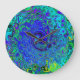 Trippy Violet Blue Abstract Retro Liquid Swirl Large Clock