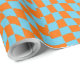 Make your gifts the center of attention with this vibrant, psychedelic wrapping paper! Featuring a warped checkerboard pattern in striking tangerine orange and electric cyan blue, this design brings a groovy 1970s and Y2K aesthetic to any present.