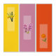 Flowers are placed in a diffused rectangle. Left panel shows two orange and yellow daffodils on yellow background. Center shows two lavender and pink lilacs on lavender background. Right panel shows an orange calendula bloom on orange background. Each panel shows the diffused section with flower at a different vertical location (Upper, middle, lower).