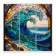 Bring the timeless beauty of the ocean home with "Ocean Majesty." This professional digital artwork reimagines the powerful energy of a breaking wave through the intricate beauty and vibrant colors of traditional stained glass art. Framed by an ornate lead-line arch with subtle floral accents, the design features complex patterns of swirling teal, cobalt, and cerulean blue glass, contrasting with textured warm ochre and gold cliffs and delicate frosted sea spray. This traditional aesthetic is a perfect statement piece for coastal home decor, beach houses, or anyone who appreciates the dynamic harmony of craftsmanship and the natural world. High-definition details ensure the depth and translucent quality of the glass textures are captured on any product.