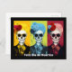 This captivating Dia de Muertos postcard showcases three stunning renditions of La Calavera Catrina in a state of dazzling pop art brilliance. Each Catrina is a kaleidoscope of vivid colors, paying homage to the lively spirit of this traditional Mexican holiday.