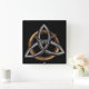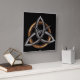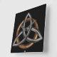 Triquetra (pronounced /traɪˈkwɛtrə/) is a noun derived from the Latin tri- ("three") and quetrus ("cornered"). Its original meaning was simply "triangle". Nowadays, it has come to refer exclusively to this more complicated shape: formed of three vesicae piscis, often with an added circle (as seen here). Much like its predecessor: the triangle, it's used to symbolize the power of things and persons that are threefold.