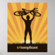 Inspirational graphic poster of a triumphant cyclist celebrating their hard earned accomplishment. Graphic presented as a retro sunset with main subject in silhouette. Poster includes default text “triumphant”, highlighting the first three letters. Default text can easily be replaced with personalized text as desired. Contact for any assistance in customization.