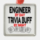 This cool text design featuring the phrase "Engineer by Day Trivia Buff by Night" with trivia cards is perfect for any engineer who loves playing trivia.