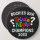 Trivia Night colorful fun gaming logo pin button badge champions award. A fun design that can be gifted to each winning team player and customized with your business or quiz name. Great for trivia night fun and team encouragement, gift to the winning team at the end of the quiz year with a free bottle of champagne for some great end of the season fun. Other matching quizzing items are available. Original graphic logo and design by Sarah Trett for www.mylittleeden.com