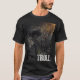 My 11 yo wore adult XL (5’7” 165#). The 8yo is small framed. She wore adult small and tied it in the back. Grandma wore adult large with long sleeve shirt underneath. Tall girl adult medium. Dark haired male adult large. Good quality dark Heather gray, Gildan brand shirt. -it was next up from basic choice and cost about $20 per shirt. Not too thick or thin. Washed and dried well, no major shrinkage. Not see-through. Can wear a bra under it fine. Screen print is just as shown and well done, front and back.