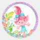 Troll stickers with cute watercolor troll on a pretty purple and teal blue floral background. These cute troll stickers can be customized with text and you can change the background color.