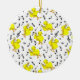 A jumble of black music notes and a cute yellow chick holding a trombone against a white background is a unique music design for low brass musicians, music teachers and school students in concert, jazz and marching band.