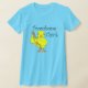 Trombone chick in curly text with a cute yellow chick holding a trombone is a funny gift design for low brass musicians at back to school, marching band, birthdays, graduation and holidays.