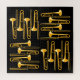 Trombones in a crosshatch pattern against a black background is a unique musical instrument design for low brass musicians, music teachers and school students in marching band.