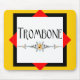 Trombone text with a decorative line sporting a music note is a unique gift design for trombonists, school music teachers and students in concert, jazz and marching band.