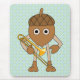 An acorn nut holding a trombone is a humorous musical instrument gift design to tickle the funny bone of low brass musicians in concert, jazz and marching band.