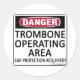 Danger, Trombone Operating Area! Ear Protection Required! This gives them fair warning! See all our musical designs on on cups, mugs, tee shirts, sweatshirts, hats, and other gifts and clothing.