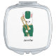 Are you looking for a gift for the trombonist in your life? This compact mirror has a cute rabbit dressed in a green and gold marching band uniform while holding a trombone. The text can be changed and customized to fit your needs!