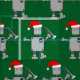 A robot wearing a Santa cap and holding a trombone is a funny gift design for low brass musicians, music teachers and school students in concert and marching band at Christmas time. Image size and background color are customizable.