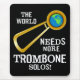 The world needs more trombone solos text with the image of the earth in the bell of a trombone is a funny low brass gift design for horn musicians, students and teachers in concert, jazz and marching band