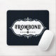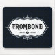 Trombone in decorative text against a white emblem is a unique gift design for low brass musicians, music teachers and students in concert and marching band.