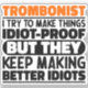 Funny Trombonist Sayings "Trombonist I Try To Make Things Idiot Proof But They Keep Making Better Idiots". Grab this Funny Trombonist design as a funny gifts for an awesome mom, dad or friend.