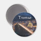 Travel photograph of the city of Tromsø at night during the winter, located at the coast of northern Norway, Scandinavia.