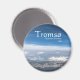 This travel souvenir is designed with a landscape photograph of the city of Tromsø in the winter, at the coast of northern Norway, Scandinavia.