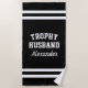 TROPHY HUSBAND funny beach towel for men. Cute personalized beachtowel for future husband, groom to be, husband, soon to be married guy etc. Cool quote summer accessory for him. Make your own fun pool towel. Humorous present for wedding party, bachelor party, bachelorette party, birthday, honeymoon etc. Customizable in different colors. Black and White example. Masculine manly typography template. Add your own funny quote or saying etc. Create his and hers towel set for bride and groom couple.