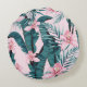 Tropic summer painting seamless pattern with palm banana leaf and plants. Floral jungle pink orchid flowers. Trendy bunch exotic flower wallpaper on pink background.