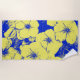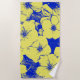 Feel yourself on a tropical isle with this beach towel designed with big, abstract yellow hibiscus flowers against a bright cobalt blue background